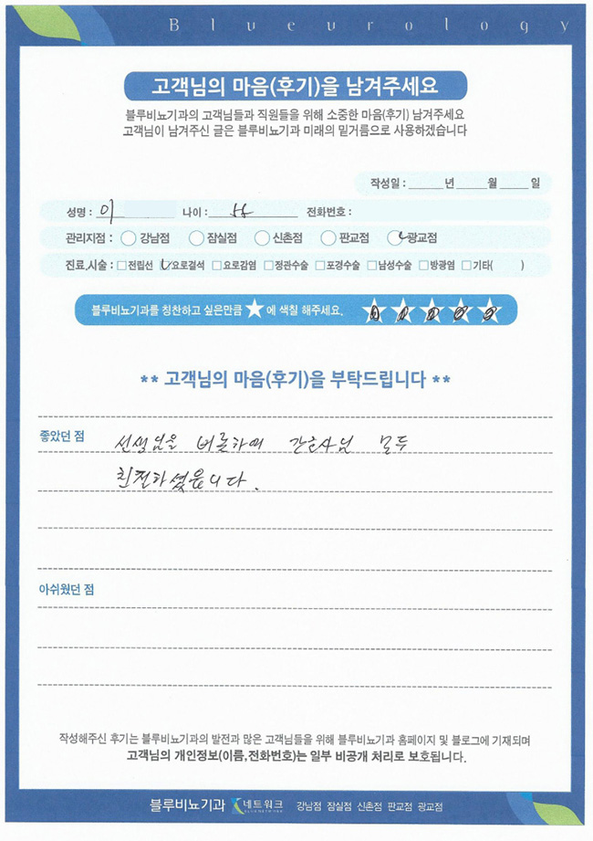 블루비뇨기과와 함께하세요!