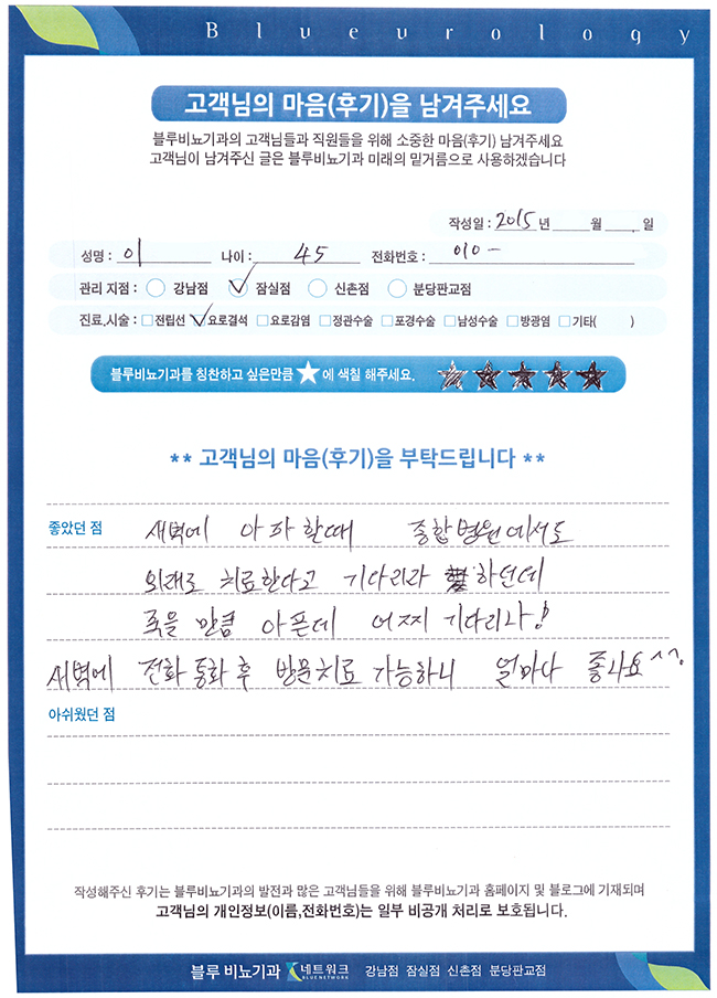 제목 [요로결석] 종합병원은 기다리라하는데 바로 방문 치료가능해서 좋아요!!!!!
