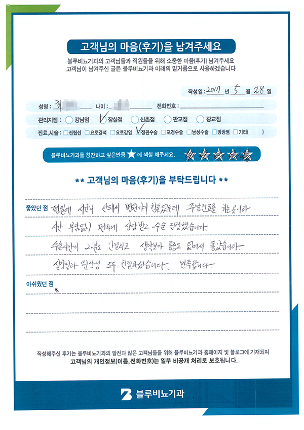 수술시간이 20분도 안걸리고 생각보다 통증도 없어서 좋았습니다.