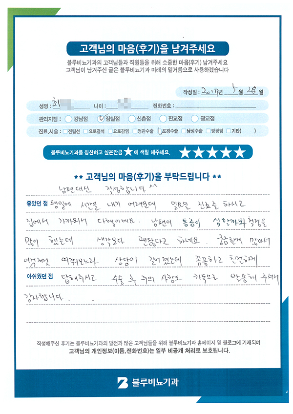 수술 후 주의 사항도 카톡으로 발송해 주셔서 감사합니다.