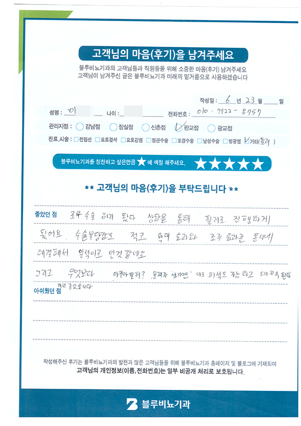조루수술 하러 왔다 상담을 통해 필러로 진행하게 됬어요.